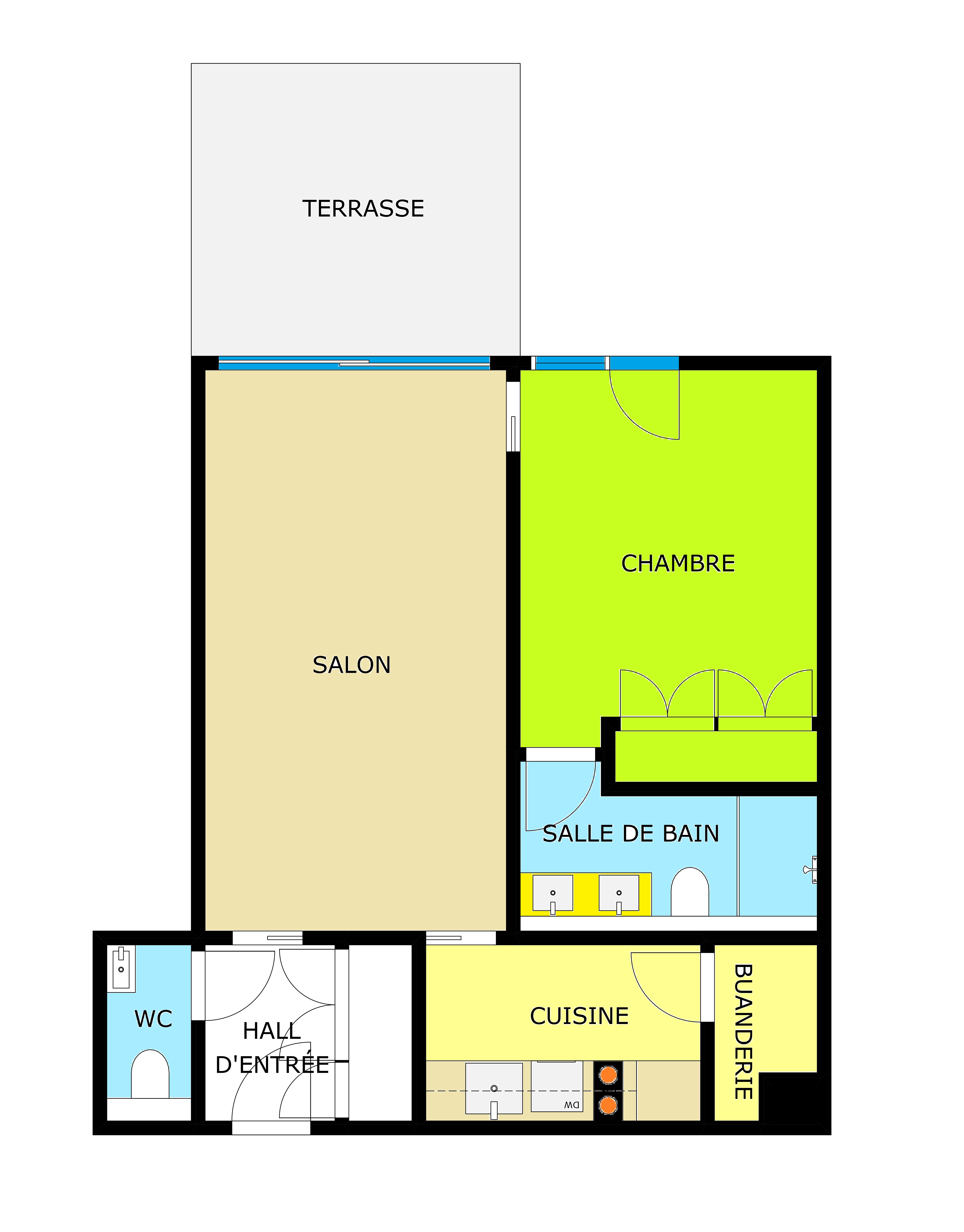 - Équipements complets : Cuisine équipée, salle de douche ergonomique, buanderie privative et système d’appel d’urgence relié 24h/24 à une équipe sur place.