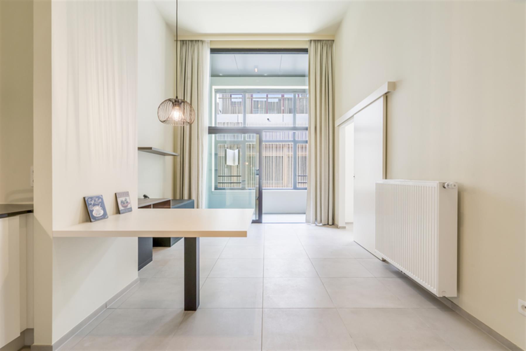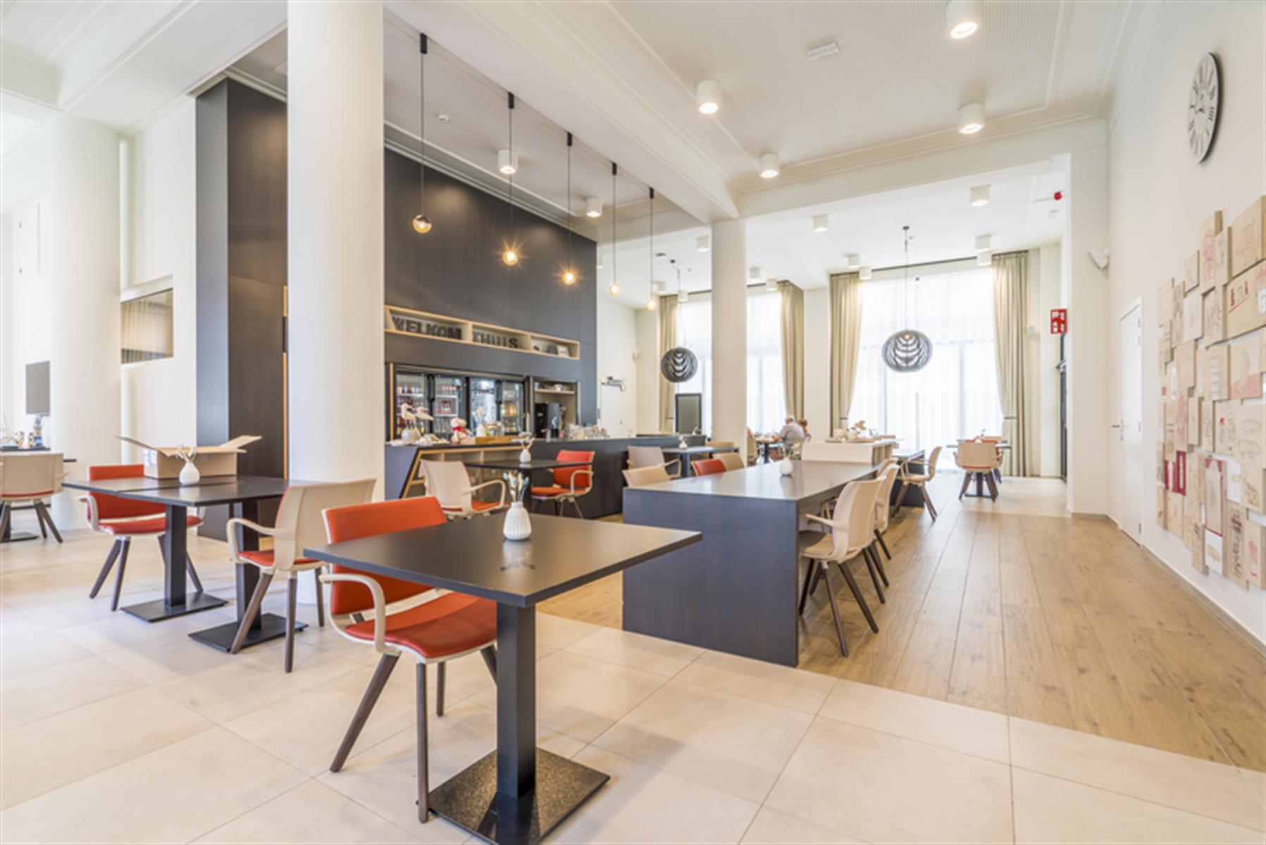 Deze erkende assistentiewoning is gelegen in het centrum van Kortrijk op amper 350 meter van de Grote Markt en op 1 minuut wandelen van het Shoppingcenter K. Dankzij de onmiddellijke nabijheid van het bus- en treinstation en de belangrijkste invalswegen, is de bereikbaarheid voor u en uw bezoek optimaal. Bij het binnenkomen van de assistentiewoning is de keuze voor kwaliteit onmiddelijk merkbaar en de hoge plafonds geven een gevoel van ruimte. Bij binnenkomst treft u een inkomhal met ingemaakte vestiaire. De lichtrijke leefruimte sluit naadloos aan op de volledig geïnstalleerde open keuken, uitgerust met een inductiekookplaat, microgolfoven, koelkast met vriesvak, dampkap, Franke-spoelbak en vaatwasser. Dankzij de talrijke keukenkasten is er meer dan voldoende opbergruimte. Het appartement beschikt over één volwaardige slaapkamer van 13,7 m² met rechtstreekse toegang tot de badkamer. Deze is ingericht met een hangtoilet, douche, lavabo met spiegel en een stijlvolle sierradiator. Tot slot is er een aparte opbergkast voorzien met aansluiting voor wasmachine en droogkast. Genieten kan op het gezellig inpandig terras. Geen opstapje en zalige verbinding met de levendige buurt. Surplus is er nog een afgesloten fietsenstaanplaats. Professionele uitbating door woonzorgnetwerk Sint-Vincentius.
